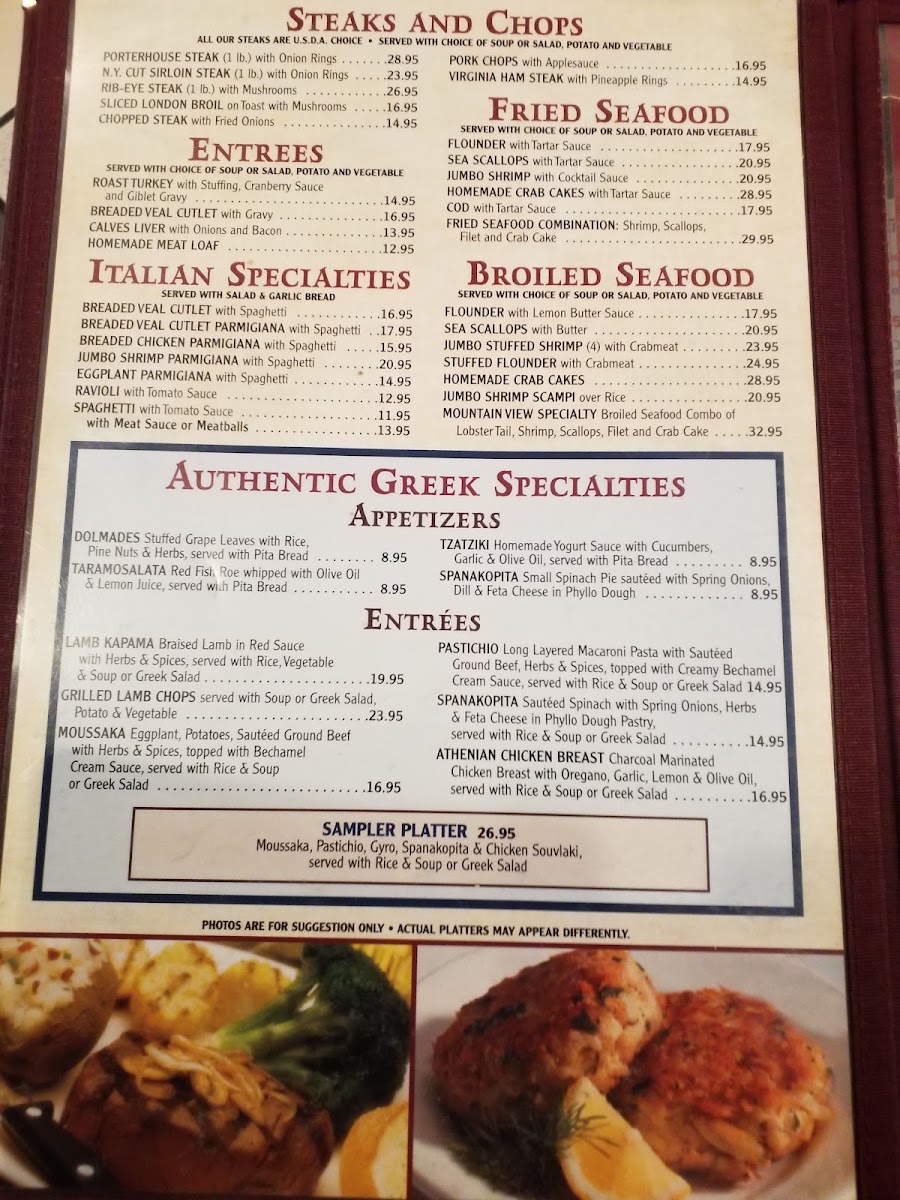 Welcome to Mountain View Diner, a charming roadside gem located at 1300 W Patrick St, Frederick, MD. Known for its delightful fusion of American, Greek, and Italian cuisine, this diner promises a satisfying experience. The menu features a variety of tempting appetizers, such as crispy Onion Rings and flavorful Stuffed Mushrooms, alongside Greek staples like Spanakopita and Dolmathes, all priced affordably.