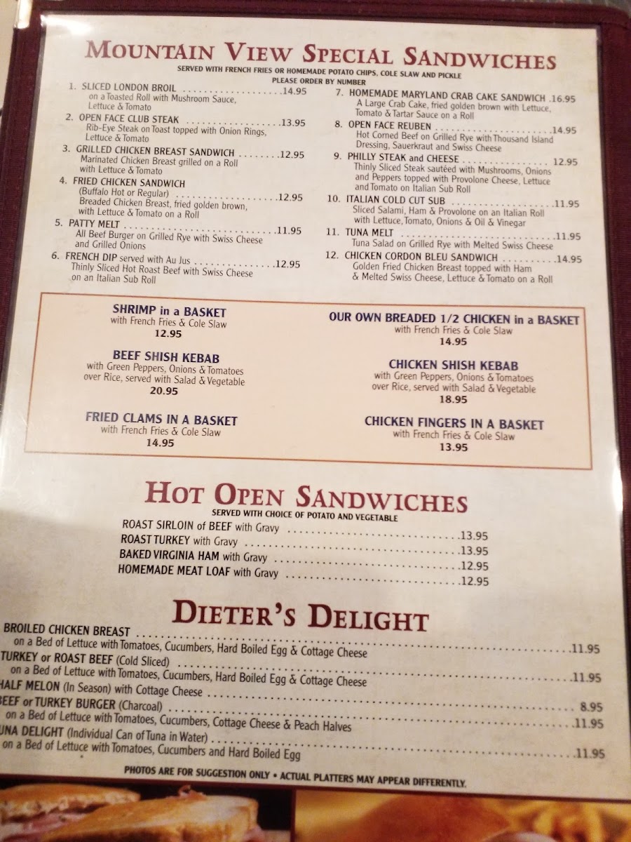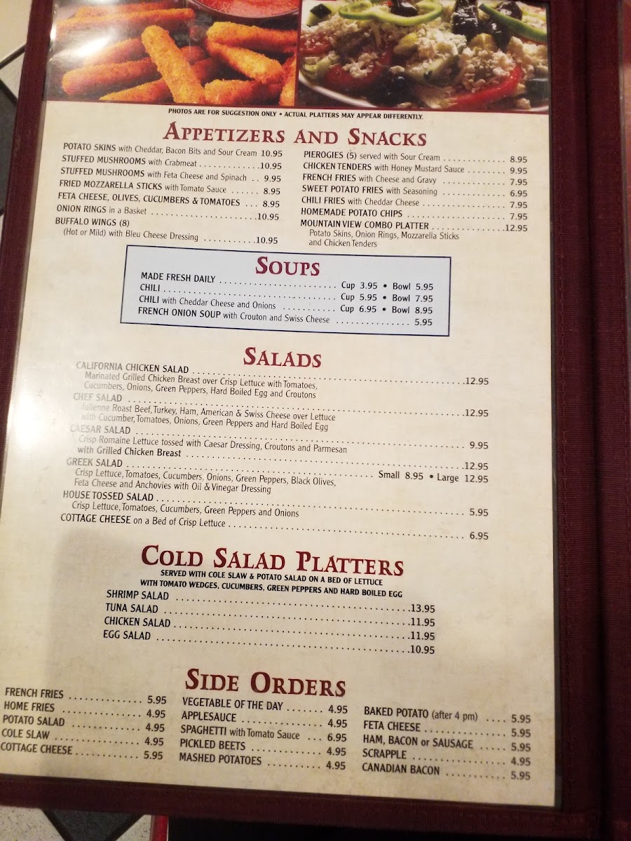 Salad lovers can enjoy crisp Greek and Caesar options, while hearty entrees include generous lunch specials that leave diners happily stuffed. Compliments flow for the friendly service and nostalgic decor, evoking a warm, retro vibe. As past patrons have noted, the portions are plentiful, ensuring that you will likely have leftovers to take home. Whether you're stopping on a road trip or seeking a local favorite, Mountain View Diner is a must-visit for comfort food enthusiasts!